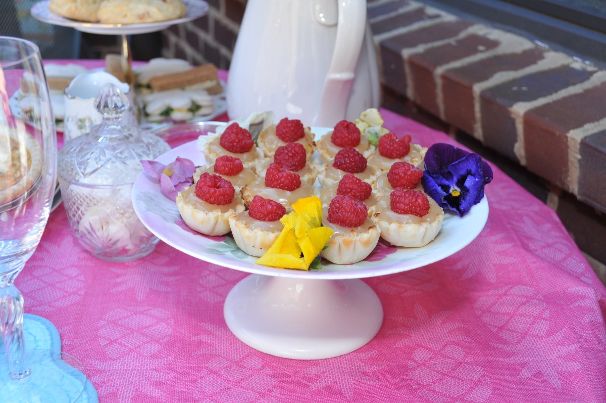 The Lemon Curd Tarts served on a cake pedestal hand painted with roses by my mother-in-law. I wish you could see it!! You can find Lemon Curd at Cost Plus World Market.