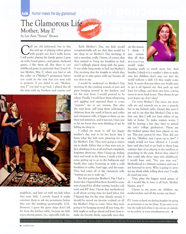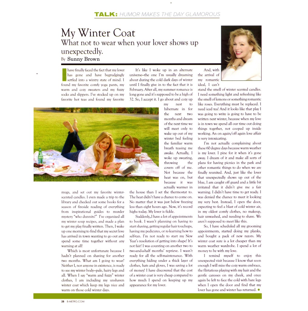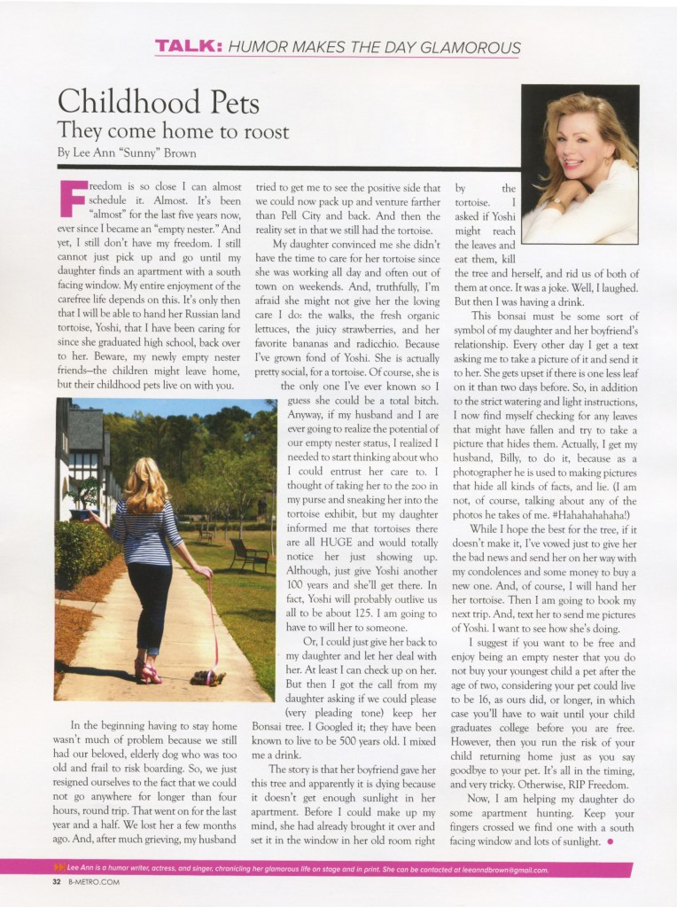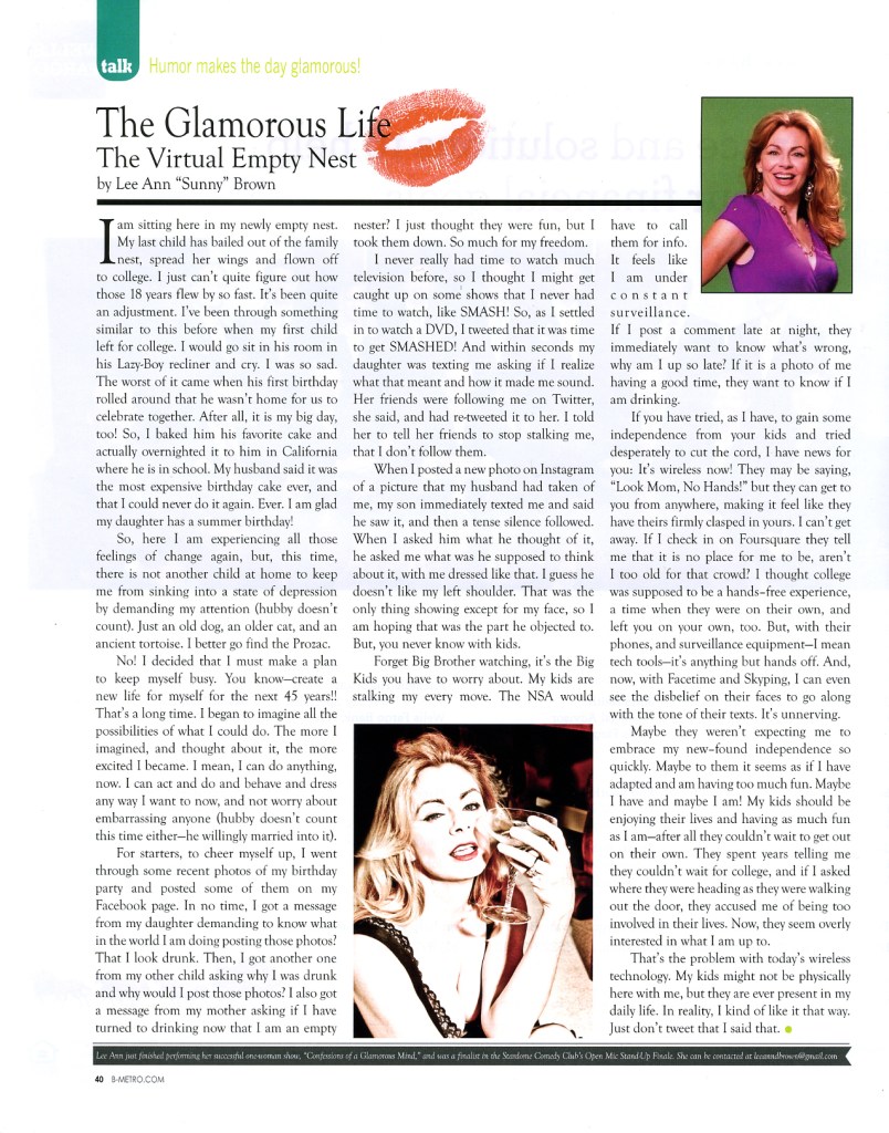 Enjoy this selection of humorous essays from Sunny’s humor column for B-Metro Magazine! My Virtual Empty Nest Share this: Click to share on X (Opens in new window) X Click to share on Facebook (Opens in new window) Facebook Click to share on Pinterest (Opens in new window) Pinterest Like Loading...